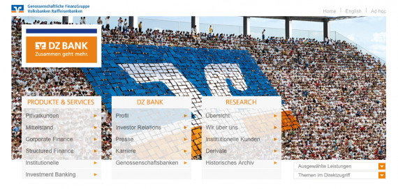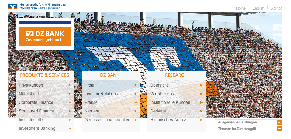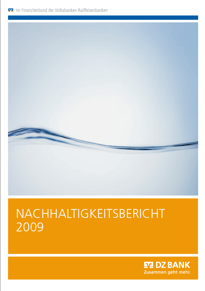 Bei der Überarbeitung des Corporate Designs der DZ BANK (Agentur: Peter Schmidt Group) wurde ein Absendermodul mit einer großen Orange-farbenen Fläche eingeführt, das die Markenfarbe sehr dominant ein