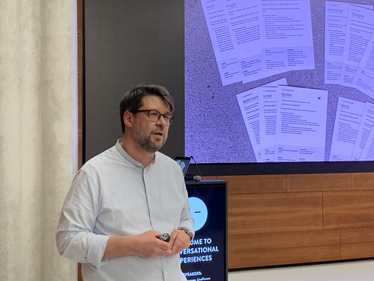 Our very own Marco Spies then elaborated on the key aspects of what needs to be considered when designing a chatbot or voice assistant as they are increasingly part of the digital offering of brands. In particular he delved into the importance of a good match between bot personality and brand personality for the sake of differentiability, usability and brand recognition. To drive the point home, he spun an arch from the 80s TV series ‚Knight Rider‘ to Audis vision of their car voice assistant for the 2020s.
