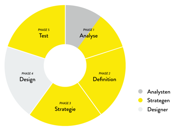 Der erste Schritt, noch bevor der Strategie- und Design-Prozess beginnt, ist eine umfangreiche Erhebung echter Nutzerdaten, welche das aktuelle Verhalten der Nutzergruppe widerspiegeln. Zusammen mit weiteren Datenerhebungen während des Prozesses bilden sie die Grundlage für die Entwicklung neuer Ansätze in Strategie und Design.